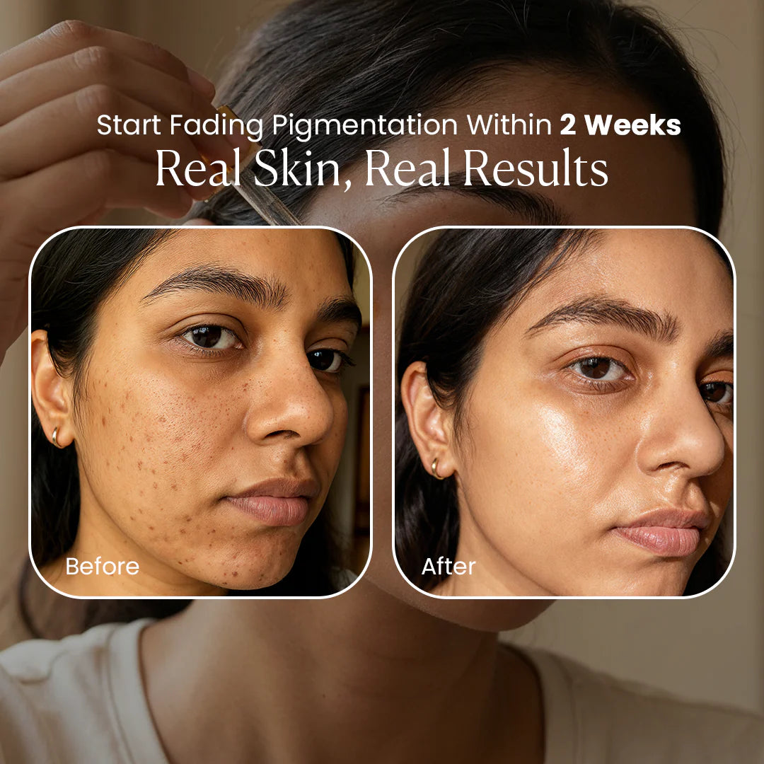 “I was honestly scared to try anything for my pigmentation, but this felt so gentle. After 3–4 weeks, my dark spots looked lighter and my skin felt calm.”